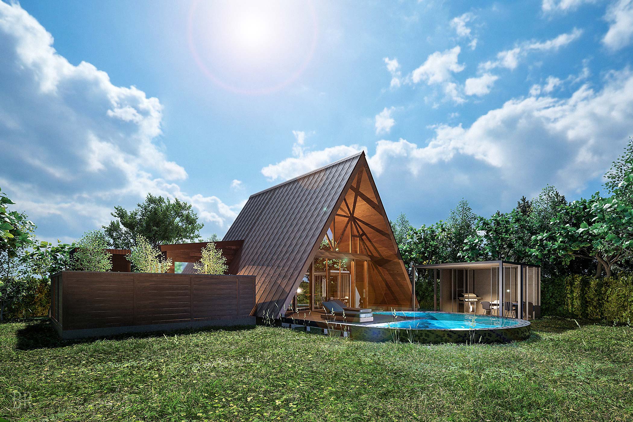 4棟限定、三角屋根の開放的なヴィラにはプライベートプールを完備。