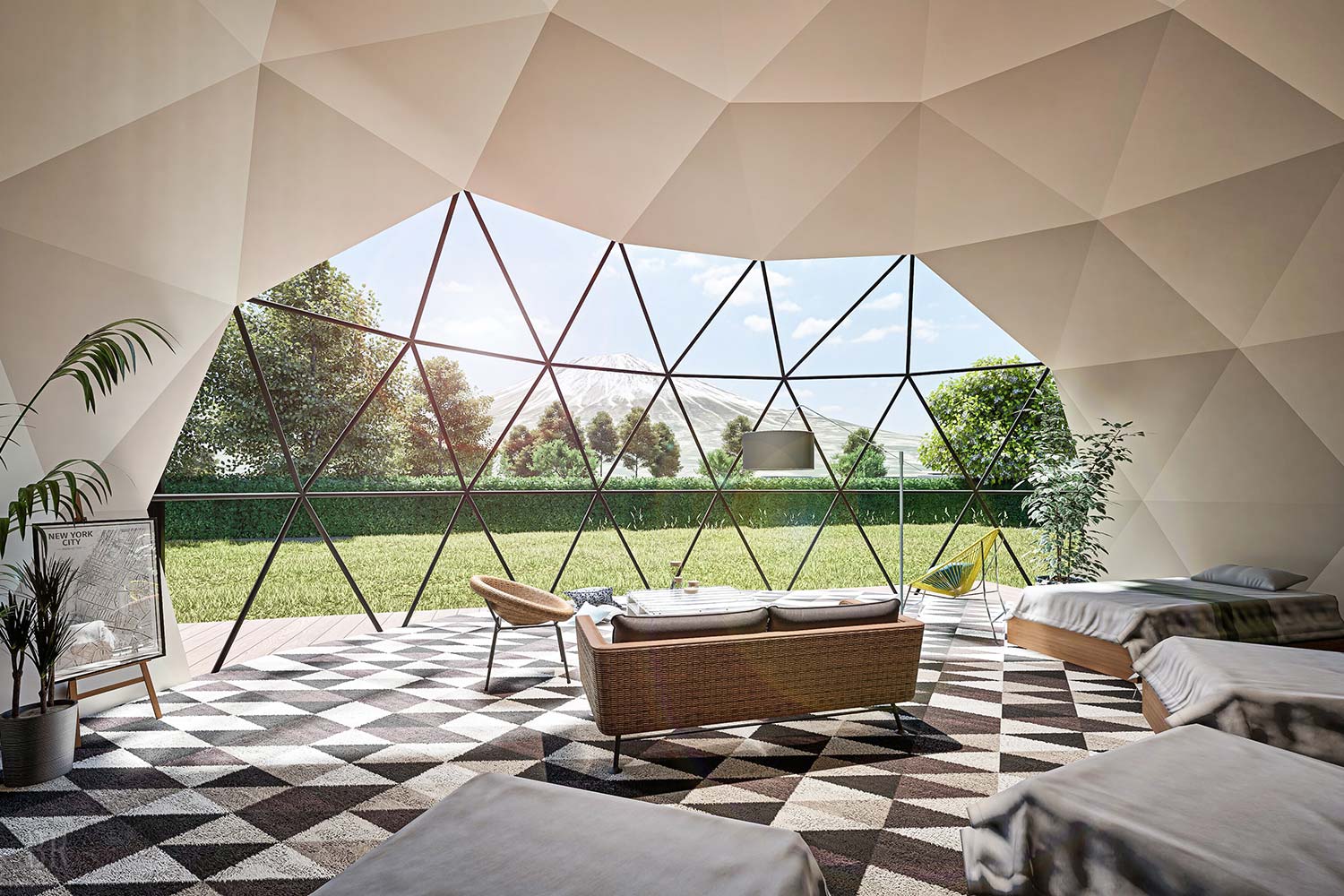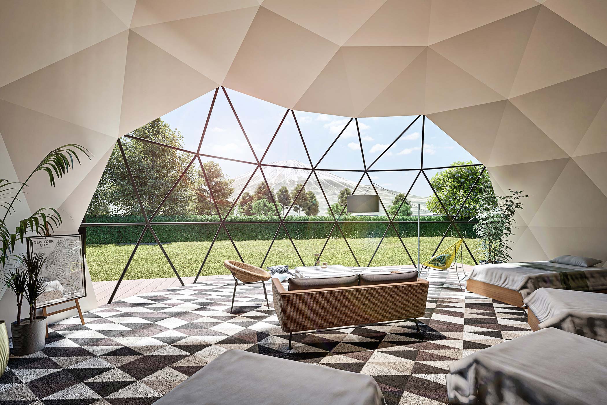 山梨・河口湖エリアに全23棟のグランピングリゾートが誕生。