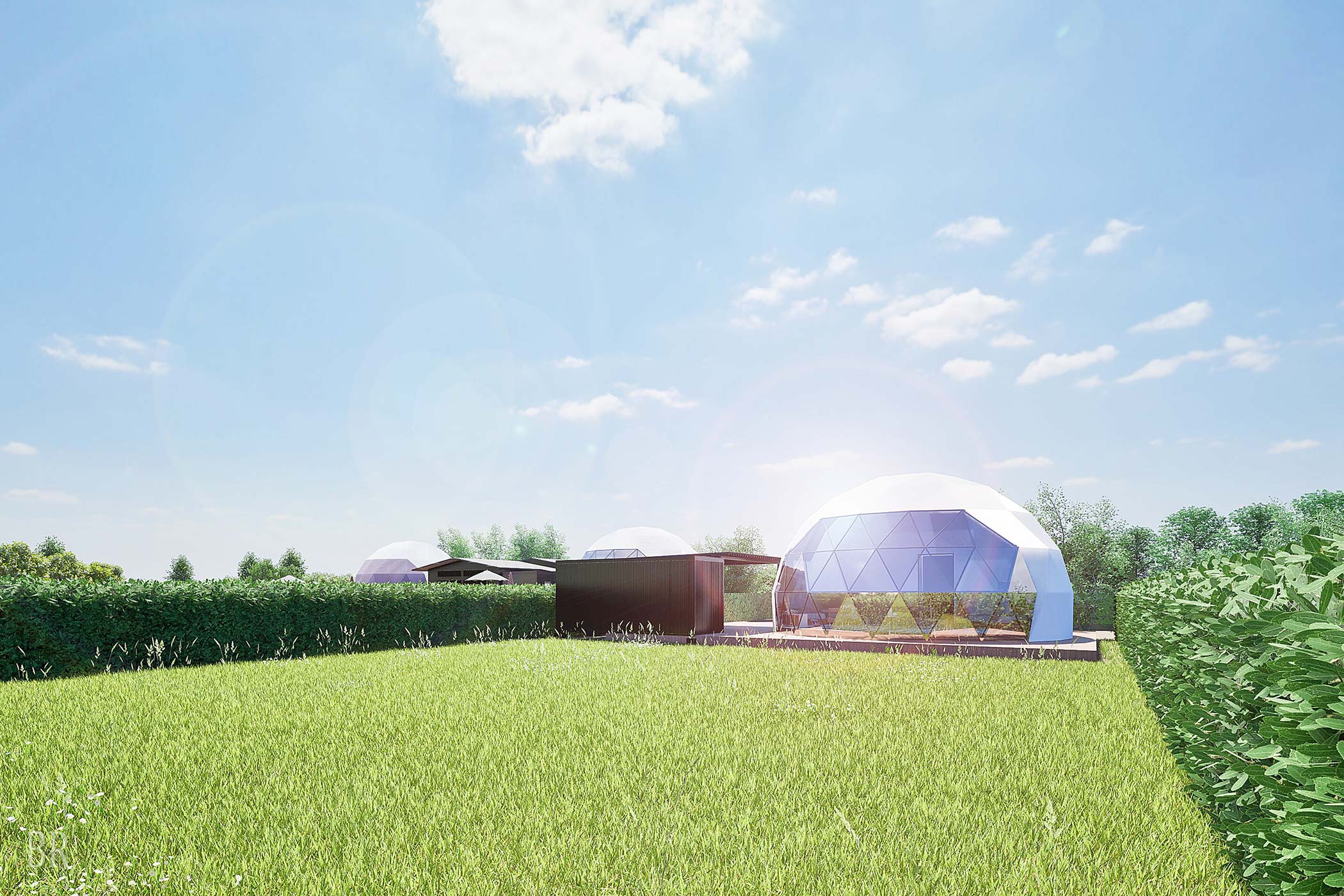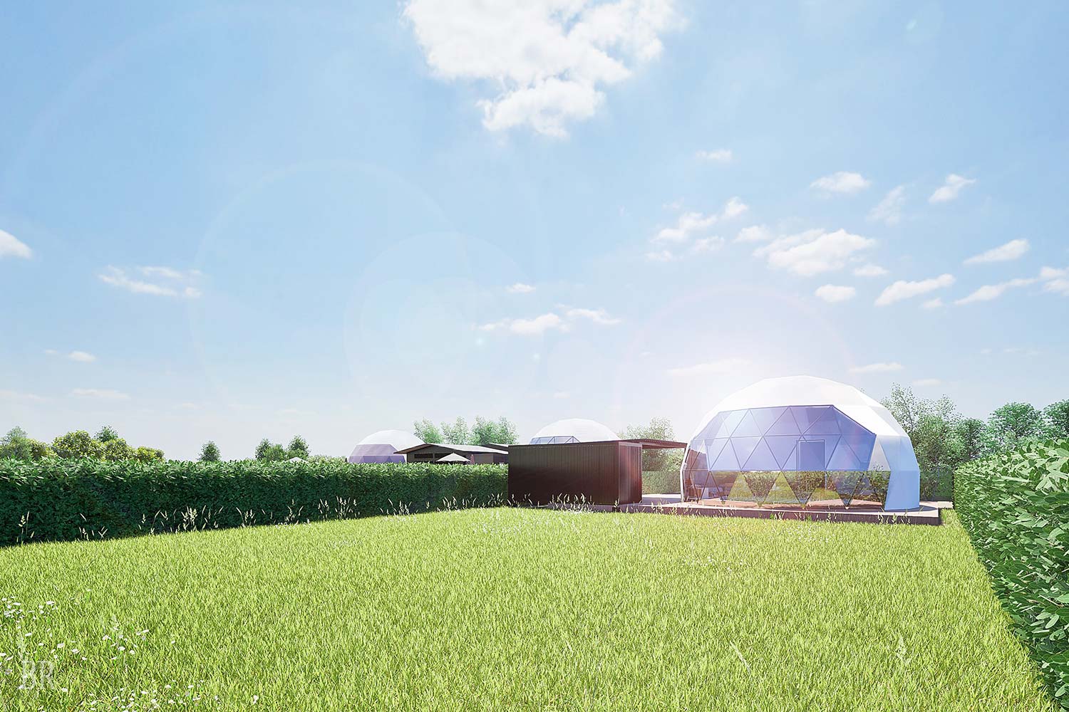 自然と調和するドームテントは広々快適な直径7m、8m、