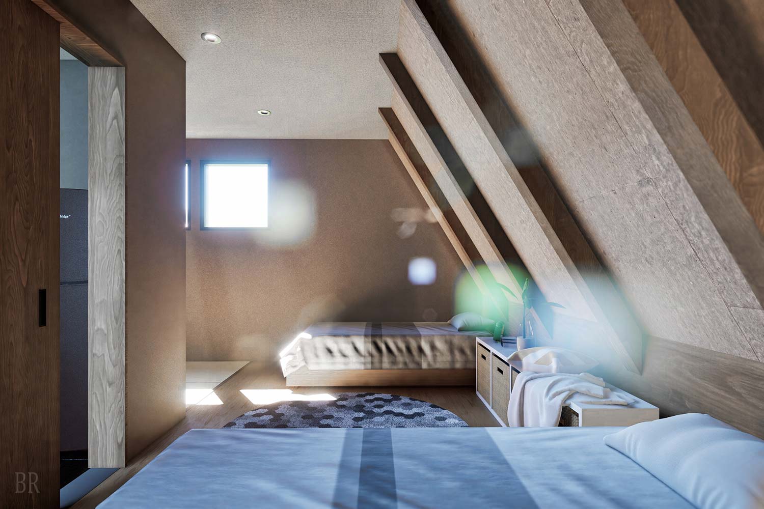 寝室が1階と2階にわかれているので、グループや2世帯での利用にも最適です。