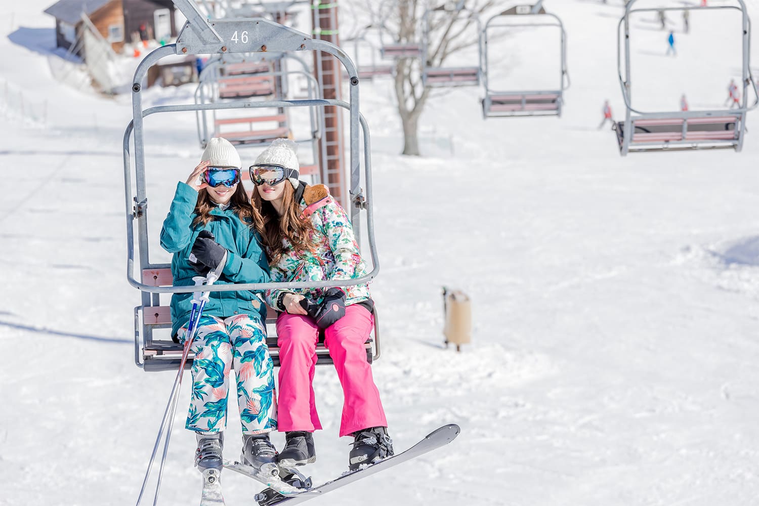 スキー、スノーボード:本格的なゲレンデでウィンタースポーツを満喫できます。